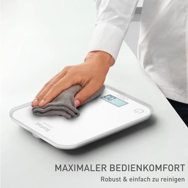 Entdecken Sie die elektronische Küchenwaage, die Backen zum Kinderspiel macht, mit einem großen, hintergrundbeleuchteten LCD-Display, das sich mühelos ablesen lässt, sowie einer großzügigen, kratzfesten Platte, auf die Behälter jeder Größe passen. Von Keksen bis zu Kuchen – die hohe Kapazität, die präzisen Abstufungen und die sofortige Umrechnung der Einheiten garantieren perfekte Ergebnisse. Und dank der intelligenten Tara-Funktion, die sich bei jeder neuen Zutat zurücksetzt, müssen Sie nie die Behälter wechseln!
