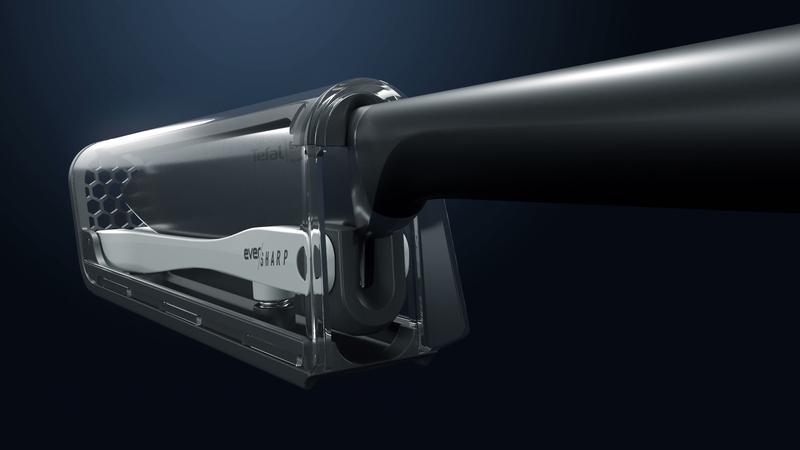 Ever Sharp ist die sicherste und innovativste Art zu schneiden und zu schärfen. Dank der exklusiven Schärftechnologie*, die direkt in die Messerabdeckung integriert ist, wird die Klinge vor und nach jedem Gebrauch automatisch im perfekten Winkel geschärft. Ein integriertes Verriegelungssystem - das sich durch Drücken des Griffs leicht lösen lässt - hält die Abdeckung sicher in Position, während Schutzflügel die Finger von der Klinge fernhalten, um ein sicheres Schärfen zu gewährleisten. *Patent angemeldet