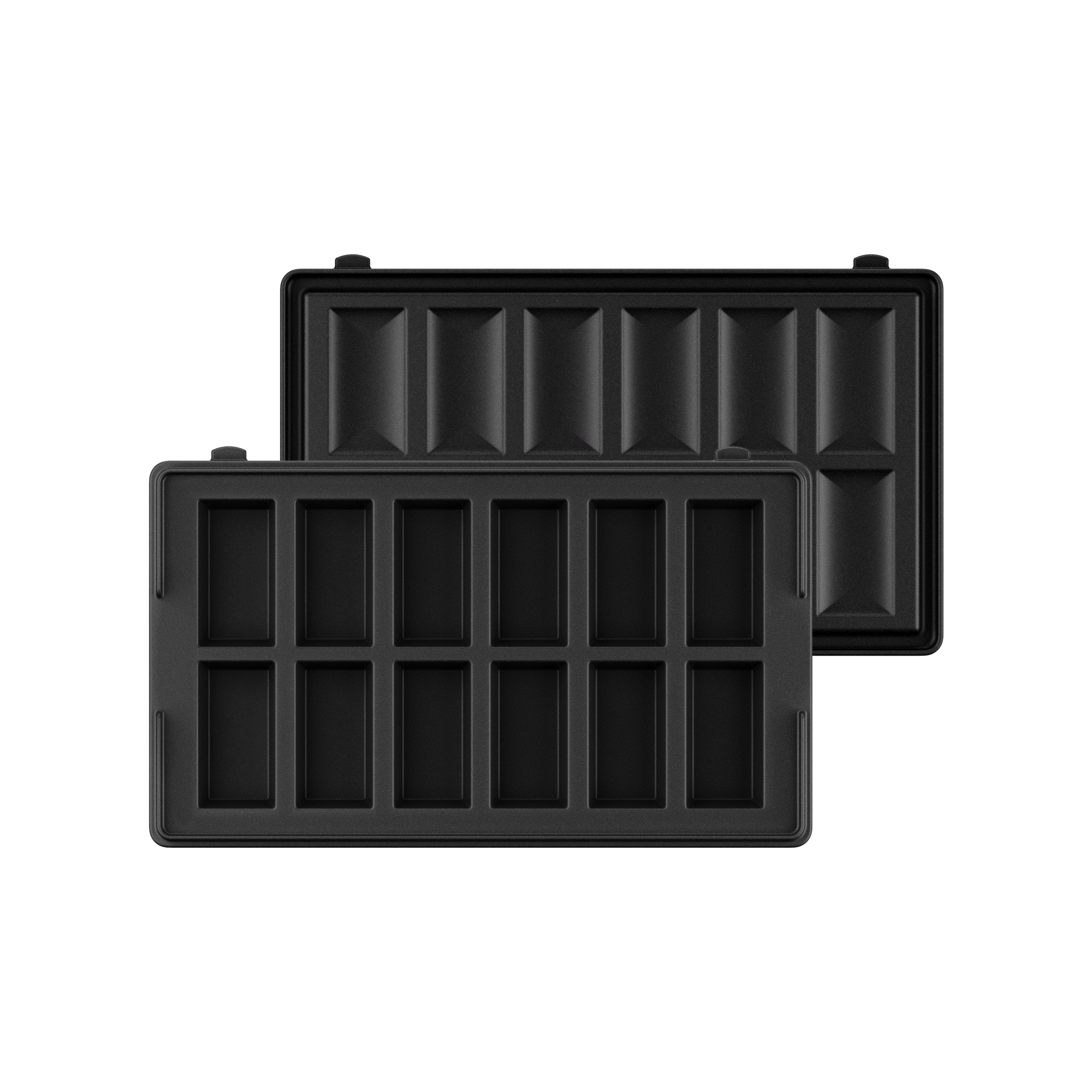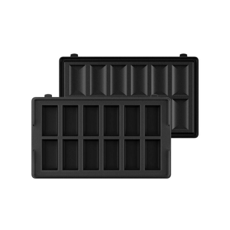 Entdecke neue Rezepte – erweitere die Vielseitigkeit deiner Snack Collection mit diesem zusätzlichen Plattenset, das die einfache Zubereitung köstlicher Mini-Riegel ermöglicht Koche wie ein Spitzenkoch mit dem mitgelieferten Rezeptheft, das speziell für die Mini-Riegel-Platten entwickelt wurde. Finde noch mehr Inspiration in der kostenlosen My Tefal App und teile deine Lieblingsrezepte mit der Community Genieße praktische Aufbewahrung dank des vertikalen Designs und der praktischen Aufbewahrungsboxen, die die Platten ordentlich organisieren Leicht zu reinigen – herausnehmbare Platten sind spülmaschinengeeignet Kompatibel mit Snack Collection Geräten SW34 / SW85 / SW86 / SW87 – entwickelt für eine perfekte Passform zu den kompatiblen Modellen