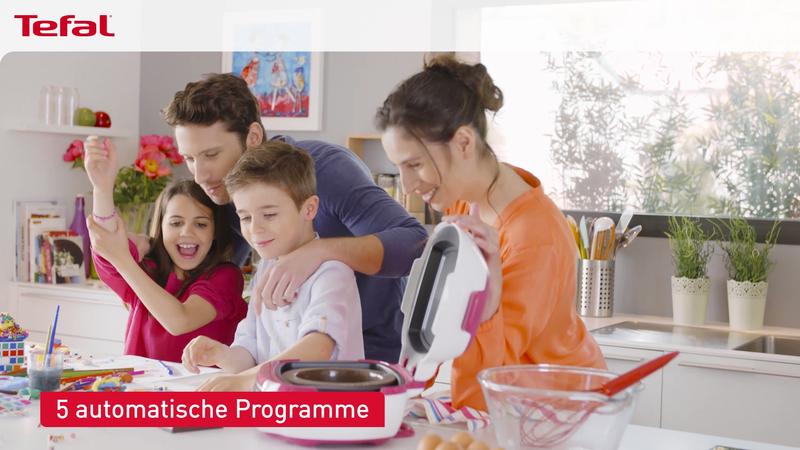 Beim Backen geht es vor allem um Spaß und Kreativität! Ideal für Backmomente mit der ganzen Familie. Dank der 5 voreingestellten Programme mit automatischer Temperaturkontrolle und einem zusätzlichen manuellen Modus bereiten Sie köstliche Backideen zu, ob süß oder salzig; ganz nach Ihren Vorstellungen. Ab sofort gelingt Backen immer und für alle. Was Sie dafür brauchen, ist inbegriffen: zwei verschiedene Silikon-Backformen für Muffins und Müsliriegel, eine antihaftbeschichtete große Backform für Blechkuchen, sowie ein Rezeptbuch und eine Schnell-Anleitung. Darüber hinaus können Sie noch mehr Ideen und Tipps in einer praktischen kostenlosen App "Cake Factory" entdecken! Lassen Sie sich einfach inspirieren; Kuchen (sogar Lavaküchlein!), Muffins, Müsliriegel, aber auch Brot, Brötchen und sogar Pizza. Erfreuen Sie sich an gelungenen Backwerken mit Cake Factory, Ihrem persönlichen Backautomaten.