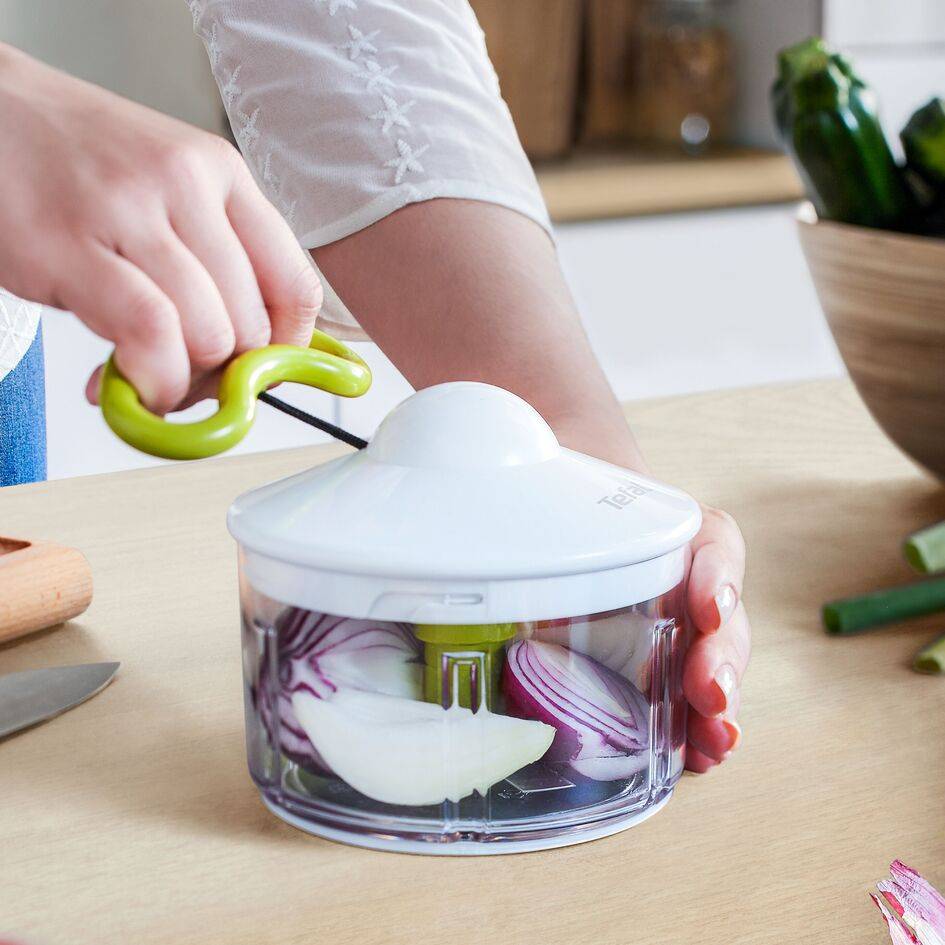 Öffnen Sie den Karton, nehmen Sie alle Teile heraus und entfernen Sie die Messerabdeckung (seien Sie vorsichtig und schützen Sie Ihre Finger). Waschen Sie den Behälter und den Rotor von Hand oder in der Spülmaschine. Waschen Sie den Deckel von Hand mit einem feuchten Schwamm. Nun können Sie loslegen!