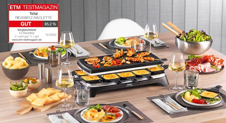 Raclette- und Grillvergnügen für bis zu 10 Personen: Perfekt für gesellige Abende mit Familie und Freunden. Mit 10 antihaftbeschichteten Pfännchen kann jeder seine Lieblingszutaten individuell zubereiten 2-in-1 Raclette & BBQ-Grill: Gerillte, antihaftbeschichtete Grillplatte für erstklassige Grillstreifen und gleichmäßige Ergebnisse – optimal für Fleisch, Gemüse & Co. Abnehmbar und spülmaschinengeeignet für die schnelle Reinigung Immer die richtige Temperatur dank Thermo-Signal™: Das praktische Thermo-Signal™ zeigt an, wann die ideale Grilltemperatur erreicht ist – für hervorragende Grillergebnisse Sicherheit & Komfort beim Genießen: Mit 2 Meter langem, abnehmbarem Kabel, Ein-/Ausschalter und Betriebskontrollleuchte – für sicheren und bequemen Einsatz direkt am Tisch Schnell heiß, gleichmäßig gegart: Mit 1350 Watt Leistung heizt das Gerät in kürzester Zeit auf und sorgt für konstant hohe Temperaturen – für geschmolzenen Käse und optimal gegarte Zutaten in Minuten Geprüfte Qualität: ETM Testmagazin bewertet den Raclette & BBQ-Tischgrill mit "GUT (85,2%)" im Raclette Test 12/2022 15 Jahre Reparierbarkeit: Günstige, schnelle Lieferung aus 6500 Reparaturzentren weltweit zum Schutz unserer Umwelt und Abfallreduktion