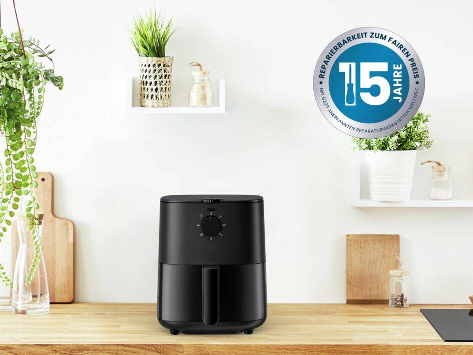 Ein vielseitiges Gerät, das Ihnen Zeit und Mühe in der Küche erspart. Die Heißluftfritteuse Tefal Easy Fry Essential wurde für dauerhafte Leistung und einfache Reparaturen entwickelt. Im Rahmen unseres Engagements für Umweltschutz und Abfallvermeidung profitiert diese zuverlässige Heißluftfritteuse dank mehr als 6500 Reparaturzentren weltweit von der kostengünstigen und schnellen Lieferung von Ersatzteilen auf 15 Jahre und mehr. Entdecken Sie unsere 15-Jahres-Garantie auf Reparierbarkeit für stets beste Kochergebnisse.