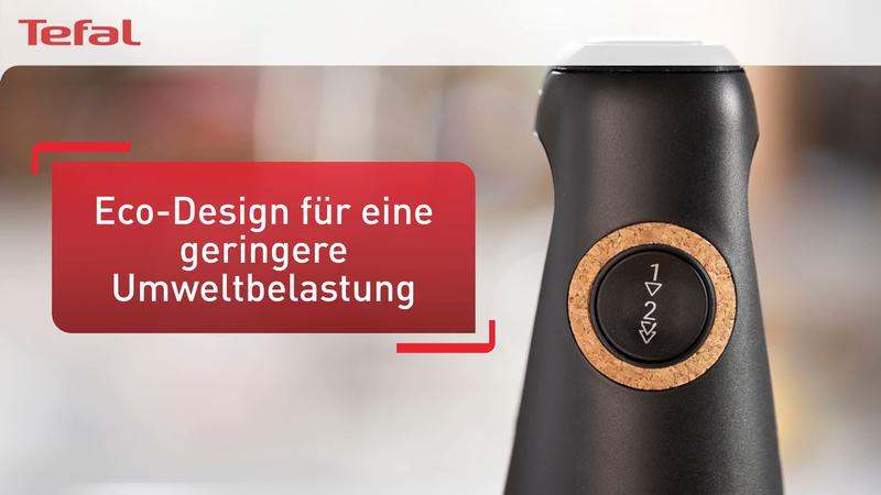 ECO-DESIGN: Um seine Umweltbelastung zu reduzieren, hat Tefal Eco Respect entwickelt, ein Produktsortiment im Eco-Design. Erfahren Sie mehr auf ecodesign.tefal.com LEISTUNGSSTARKER 600W MOTOR: Zuverlässiges Mixen kinderleicht für rasche Ergebnisse und hervorragende Leistung EINFACHE BEDIENUNG: Pürierstab mit zwei Geschwindigkeitsstufen für viele Anwendungen
