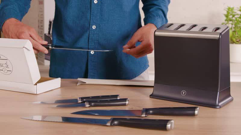 - Selbstschärfender Messerblock im eleganten dunkelblau