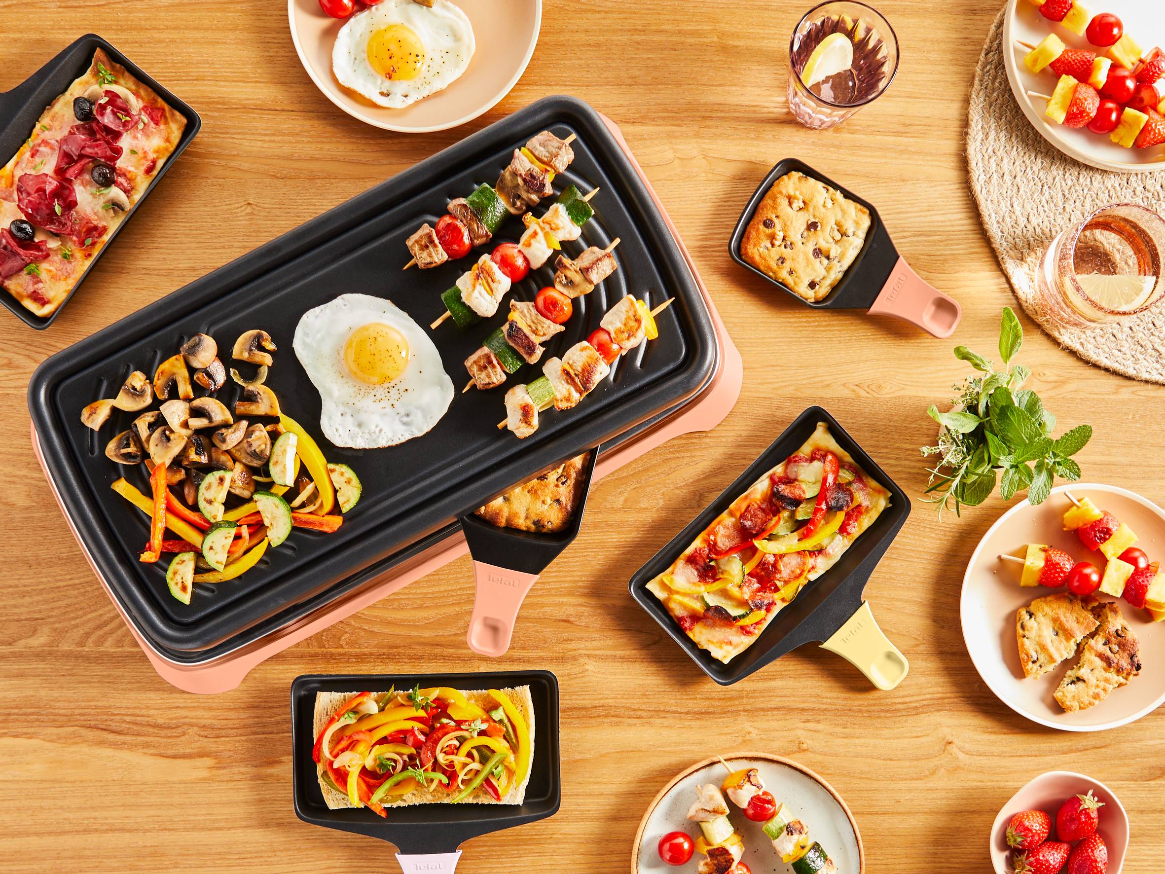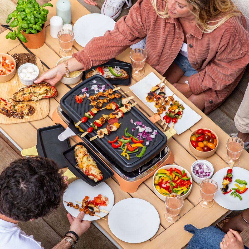 Mit Food & Co erfindet Tefal gemeinsame Genussmomente neu. Das vielseitige Kochgerät eignet sich für alles von Raclette und Pizza bis hin zu Aperitifs, Tapas, Brunch und vieles mehr. Genießen Sie das ganze Jahr über köstliche Momente mit Freunden und Familie – drinnen oder draußen – mit unendlich vielen Rezeptideen, die Ihnen sicher gefallen werden. Und wenn die Party vorbei ist, könnten Aufräumen und Verstauen nicht einfacher sein – ideal für kleine Räume!