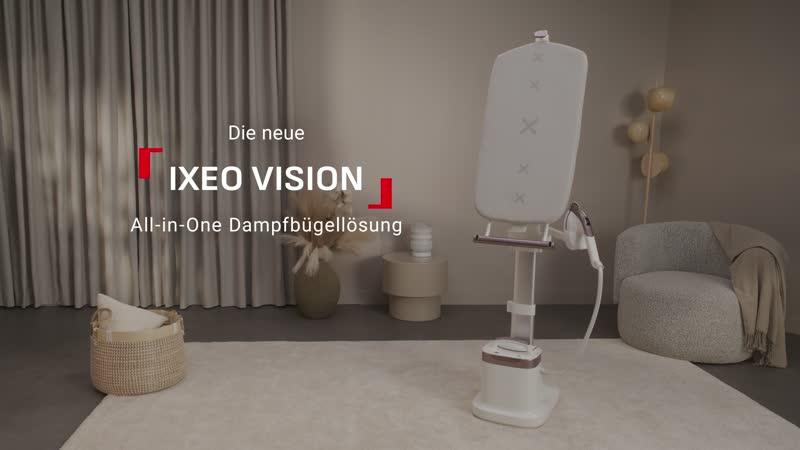 Entdecken Sie die optimale Kombination von Bügeln und Dampfglätten mit IXEO Vision! Das vielseitige Gerät bietet das Beste aus beiden Welten: kraftvollen Dampf und mühelose Handhabung. Mit dem neuen Multipositionsbrett können Sie alle Ihre Kleidungsstücke pflegen und mit dem leistungsstarken Dampf, dem leichten Handteil und der LED-Technologie mühelos und präzise Falten entfernen.