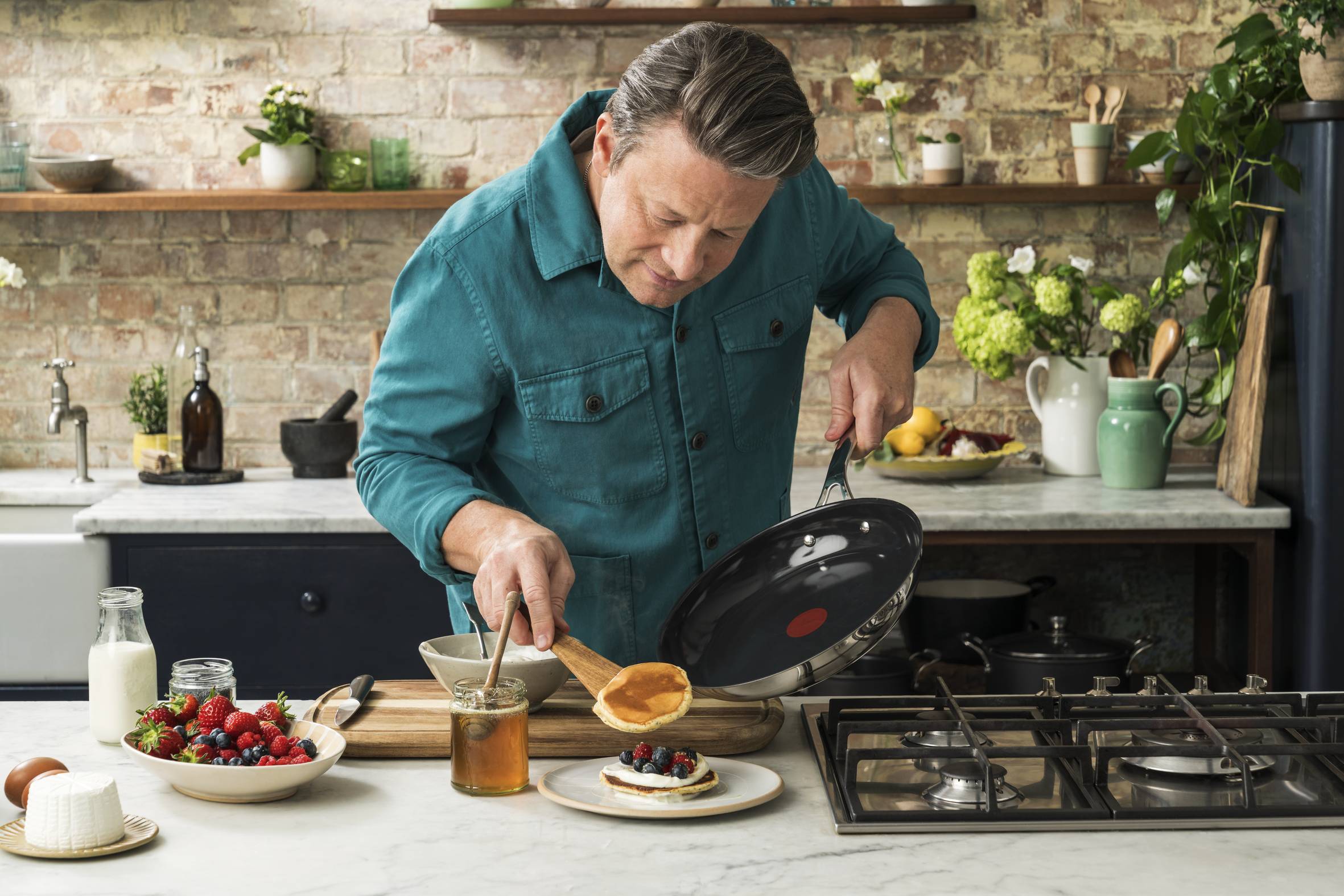 Jamie Oliver sagt: "Mit der Keramikbeschichtung der nächsten Generation haben wir unseren Alltagspfannen frischen Wind eingehaucht. Diese Antihaftbeschichtung macht das Garen und Reinigen zu einem Kinderspiel." Die Jamie Oliver by Tefal 24 cm Bratpfanne ist ideal für jede Küche. Sie eignet sich, um Omlettes, Pfannkuchen und einfaches Fladenbrot zuzubereiten, während die Keramik-Antihaftbeschichtung das Reinigen zum Kinderspiel macht.