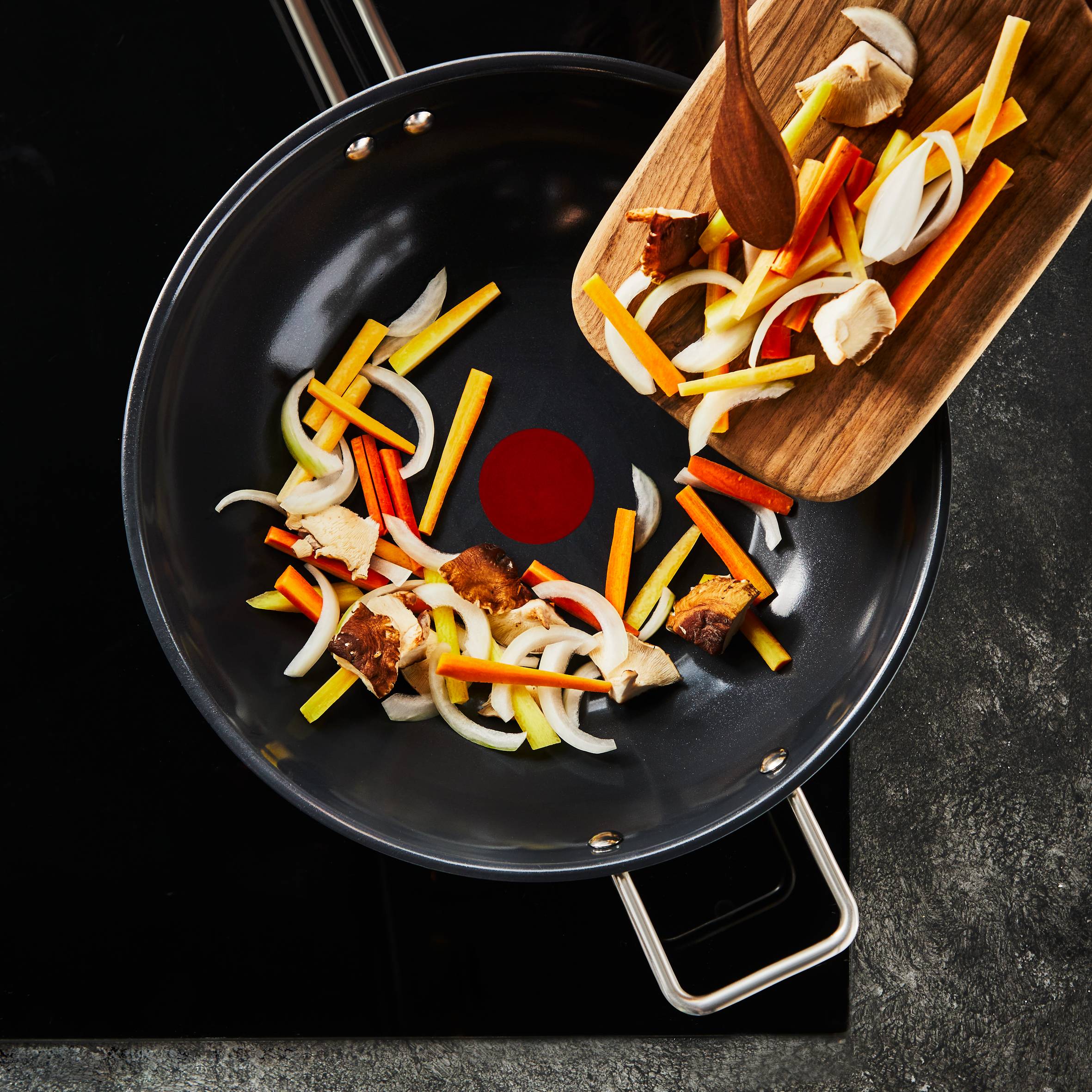 KERAMIK-ANTIHAFTVERSIEGELUNG: Eine keramische Antihaftversiegelung der neuen Generation für müheloses Braten Tag für Tag. Gesundes, fettarmes Braten leicht gemacht THERMO-SIGNAL™: Färbt sich einheitlich dunkelrot, wenn die Pfanne die ideale Brattemperatur erreicht hat, für ein perfektes Erhitzen RECYCELBAR: Vollständig recyclebare Wok-Pfanne mit einem Pfannenkörper aus 40% recyceltem Edelstahl - erfahren Sie mehr unter ecodesign.tefal.com 10-JAHRE GARANTIE: Hochwertiges Kochgeschirr mit einer 10-Jahres-Garantie, das sich durch ein sicheres und robustes Design auszeichnet und nicht mit der Zeit beschädigt werden kann MINIMALISTISCHES SCHWEDISCHES DESIGN: Klare Linien mit einem minimalistischen Touch und schwedischer Inspiration, entworfen von Mattias Mikaelsson AUSGEZEICHNETE WÄRMEVERTEILUNG: Dicker 3-Schicht-Boden für hervorragende Wärmeverteilung und gleichmäßige Bratergebnisse - für alle Herdarten geeignet ROBUSTER GRIFF: Extra widerstandsfähiger Griff für mehr Sicherheit und einfachere Handhabung beim Braten WELTWEIT NR. 1: Weltweit die Nummer 1 (Quelle: Euromonitor International Limited, Ausgabe Haus und Garten 2024, Markeneinzelhandelswert RSP, Daten für 2023)