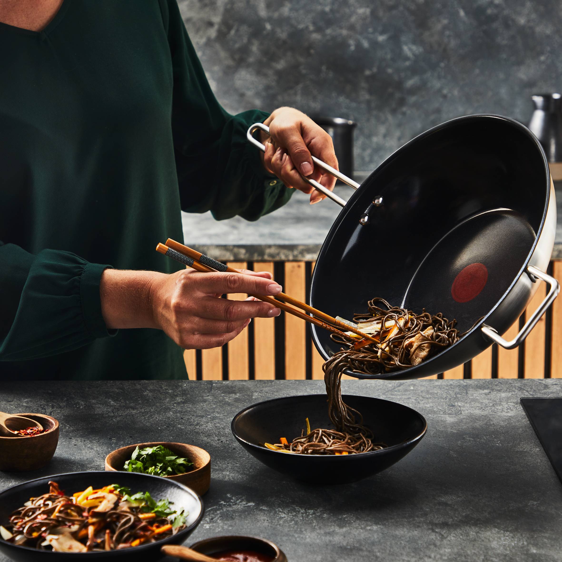 Kreieren Sie mit der Tefal Nordica Wokpfanne gesunde Mahlzeiten, die so gut schmecken, wie sie aussehen. Entdecken Sie Kochgeschirr, das nachhaltig aus hochwertigem, recyceltem Edelstahl hergestellt wird und unvergleichliche Funktionalität und Leistung bietet. Die keramische Antihaftversiegelung verspricht gesunde und schmackhafte Mahlzeiten, und der 3-Schicht Boden sorgt für eine perfekte Wärmeverteilung. Die markante Ästhetik verleiht Ihrer Küche einen Hauch von klaren Linien und elegantem Stil.