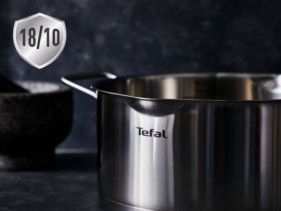 KOCHTOPF IN ERSTKLASSIGER QUALITÄT MIT 10 JAHREN GARANTIE in robustem und sicherem Design mit hoher Langlebigkeit INNOVATIVER SIEBDECKEL mit patentiertem Doppelgriffsystem und Ausgießer, für nahtloses, problemloses und einfaches Abgießen PLATZSPARENDES, STAPELBARES DESIGN, das elegant und kompakt in Schränke und Schubladen passt DICKER 3-SCHICHTIGER BODEN für ausgezeichnete Wärmeverteilung und gleichmäßige Kochergebnisse jederzeit – für alle Herdarten geeignet INTELLIGENTES DESIGN MIT LEICHT ABLESBARER MESSSKALA auf der Innenseite für absolute Genauigkeit beim Befüllen GROSSES GLAS-SICHTFENSTER auf dem Deckel zur einfachen Überwachung des Garprozesses VOLLSTÄNDIG RECYCELBARER TOPF mit einem Körper aus 90% recyceltem Edelstahl – erfahren Sie mehr unter ecodesign.tefal.com SPÜLMASCHINENFEST für eine einfache Reinigung und unübertroffenen Komfort – ideal für den häufigen Gebrauch