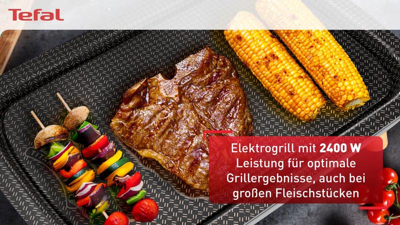 PERFEKTES ANBRATEN: Plancha des Saveurs Gourmet Elektrogrill von Tefal, für schmackhafte Ergebnisse ohne zusätzliches Fett SCHNELLES & GLEICHMÄSSIGES GAREN DANK HOHER LEISTUNG: Ein Grill mit 2400 W Leistung für optimale Grillergebnisse, auch bei großen Fleischstücken HOCHRESISTENTE ANTIHAFTBESCHICHTUNG: Die Titanium Force Beschichtung mit Thermo-Spot® Technologie hält bis zu 2-mal länger*