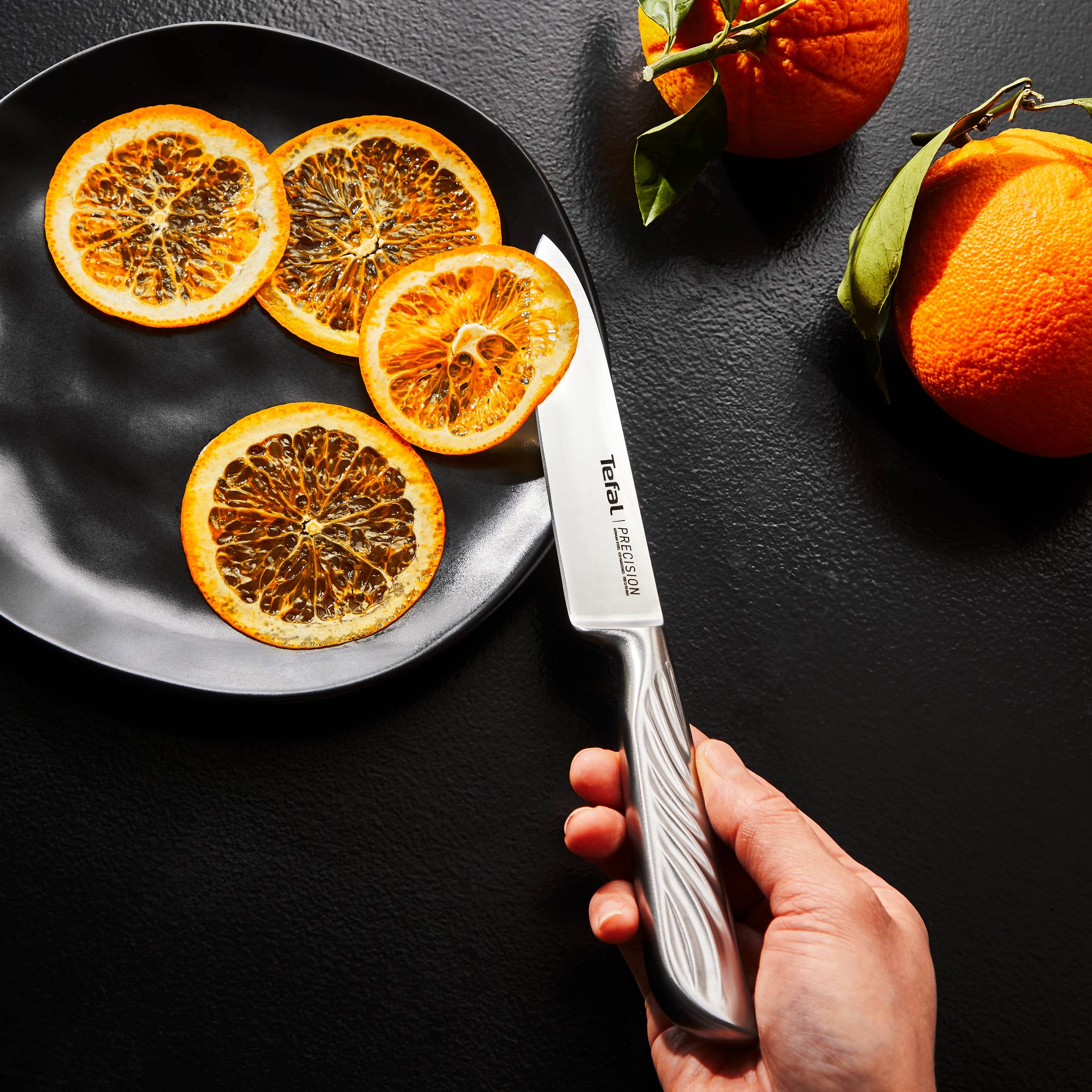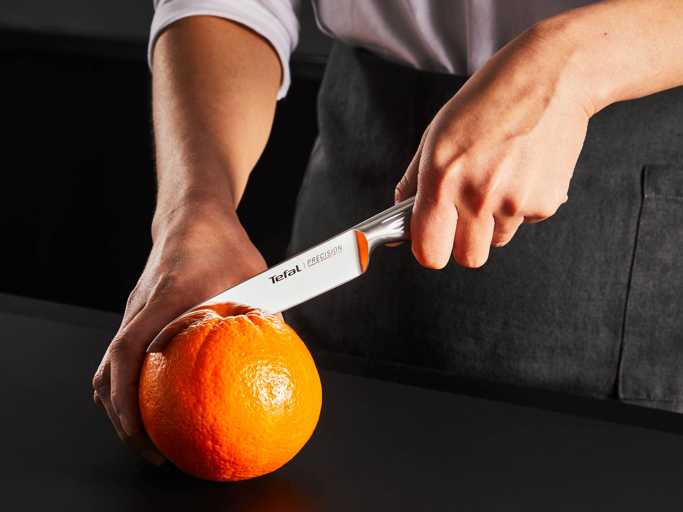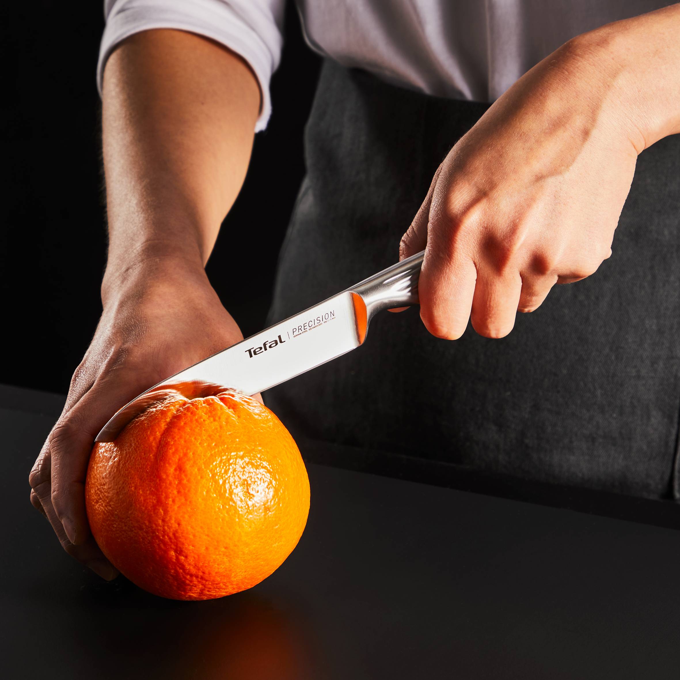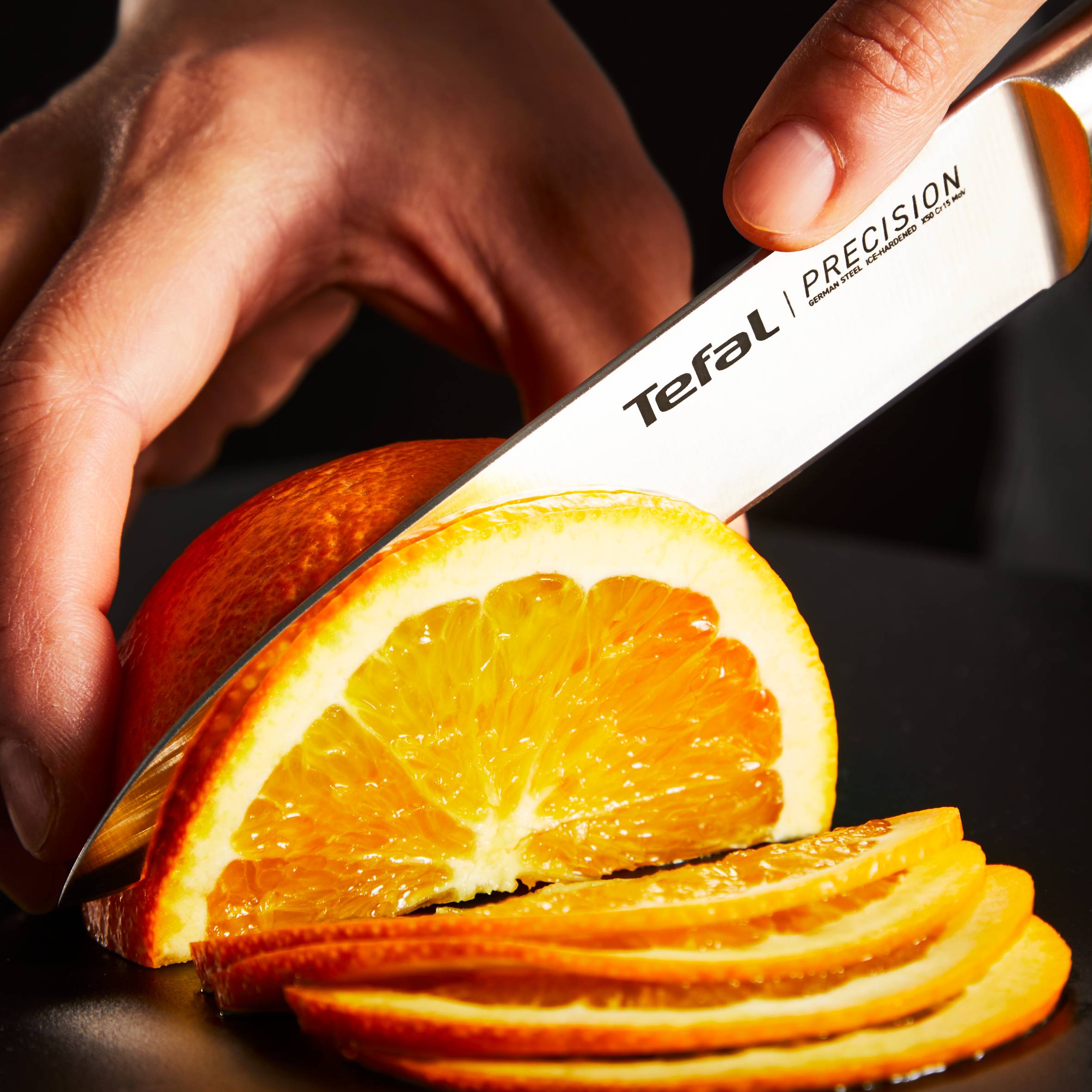 Entdecken Sie Precision, die schärfste Messerkollektion von Tefal, und erleben Sie jedes Mal einen perfekten, präzisen Schnitt. Es ist das Küchenmesser, das mühelos jede Zutat schneidet - und das in perfekter Eleganz! Genießen Sie die eleganten Linien und den endlosen Komfort in der Hand. Vollständig aus deutschem Edelstahl gefertigt und mit unserem speziellen Eishärteverfahren behandelt, verspricht Precision langanhaltende Leistung, besondere Langlebigkeit und Korrosionsbeständigkeit.