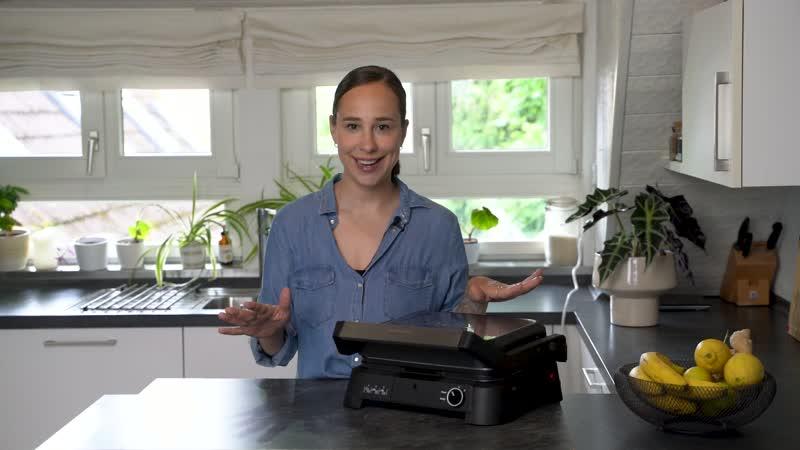 3-in-1: Kontaktgrill, Barbecue- und Backofen-Position Präzises Grillen: Verstellbares Thermostat, 3 Temperaturen Backofen-Position: 3 Höhen, Grillen ohne Zerdrücken