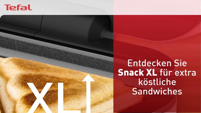 GOURMET SNACKS IN XL FORMATE: Tefal Snack XL Sandwichmaker & Waffeleisen verfügt über besonders tiefe Platten für schmackhafte Sandwiches und köstliche Waffeln mit all Ihren Lieblingszutaten und Toppings PRAKTISCH: Waffeleisen und Sandwichtoaster mit zwei herausnehmbaren Platten für großzügig gefüllte Sandwiches oder köstliche Waffeln und kinderleichtes Auswechseln. Und mit seinem 850 W, ganz schnell zubereitet! EINFACHE REININGUNG: die antihaftversiegelte Platten sind spülmaschinenfest, für eine rasche, einfache Reinigung
