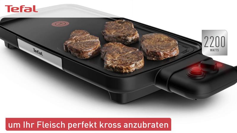 LEISTUNGSSTARK GRILLEN: Ein extra starker Elektrogrill mit einer hoch wirksamen Power-Boost-Zone auf Knopfdruck für perfektes scharfes Anbraten aller Fleischarten und mit sechs Garpositionen für alle Arten von Speisen ANTIHAFT-BESCHICHTUNG: Hervorragende Antihaft-Beschichtung Tefal Resist+ verbessert mit der Thermo-Spot®-Technologie, die rot wird, wenn die perfekte Temperatur zum Anbraten erreicht ist EXTRAGROSSE FLÄCHE: Elektrischer Tischgrill mit großzügiger Grillfläche von 1300 cm² für 6 bis 8 Personen