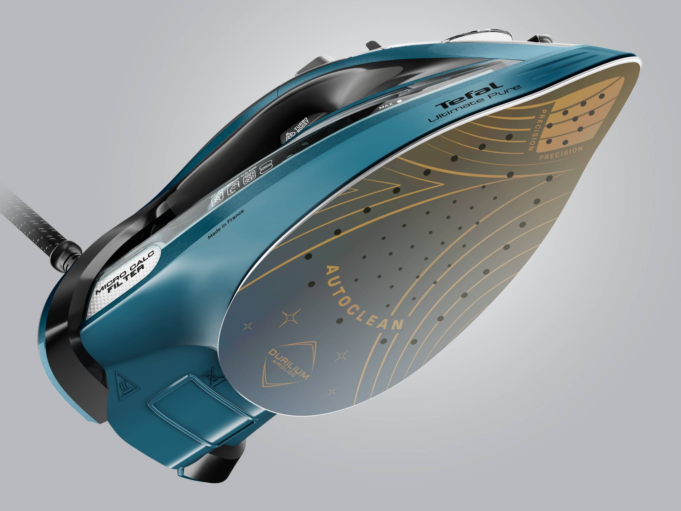 Das Tefal Ultimate Pure Dampfbügeleisen wurde entwickelt, um jede Herausforderung in der Textilpflege mühelos zu meistern. Es bietet eine leistungsstarke Performance und verfügt über eine AutoClean Bügelsohle für eine stressfreie Gerätepflege. Die Leistung von 3200 W sorgt für ein schnelles Aufheizen, mit einer kontinuierliche Dampfabgabe von bis zu 60 g/Minute und einem beeindruckenden Dampfstoß von 300 g/Minute, um auch die hartnäckigsten Falten zu entfernen.