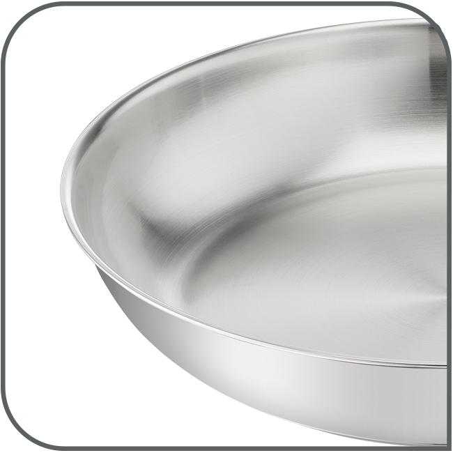 Tefal Virtuoso sind widerstandsfähige Pfannen, die höchsten Erwartungen gerecht werden und langfristig optimale Leistungen garantieren. Der hochwertige Edelstahl sorgt für Langlebigkeit, Leistung und Widerstandsfähigkeit, auf die Sie sich jeden Tag verlassen können, ergänzt durch eine 10-jährige Garantie auf den Edelstahl. Die unversiegelte Edelstahloberfläche steht extremen Temperaturen stand und bietet optimale Voraussetzungen für das Braten von Fleisch: dank der hohen Temperaturen wird die Außenseite knusprig-braun, während die Innenseite wunderbar zart bleibt. Der robuste genietete Edelstahl-Griff ermöglicht ein neues Kochgefühl mit mehr Stabilität und Halt, damit Ihre Gerichte bequem und mühelos von der Hand gehen. Der komfortable Griff sorgt für ein perfektes Kochgefühl. Die unversiegelte Edelstahl-Innenseite eignet sich hervorragend für das Braten von Fleisch und Gemüse und ermöglicht eine feine Karamellisierung, die zur optimalen Entfaltung der Aromen beiträgt. Langlebigkeit und Leistung gewährleisten gleichmäßige Bratergebnisse, unterstützt durch einen extrastarken Pfannenboden, der für einen Unterschied sorgt, den Sie schmecken können.