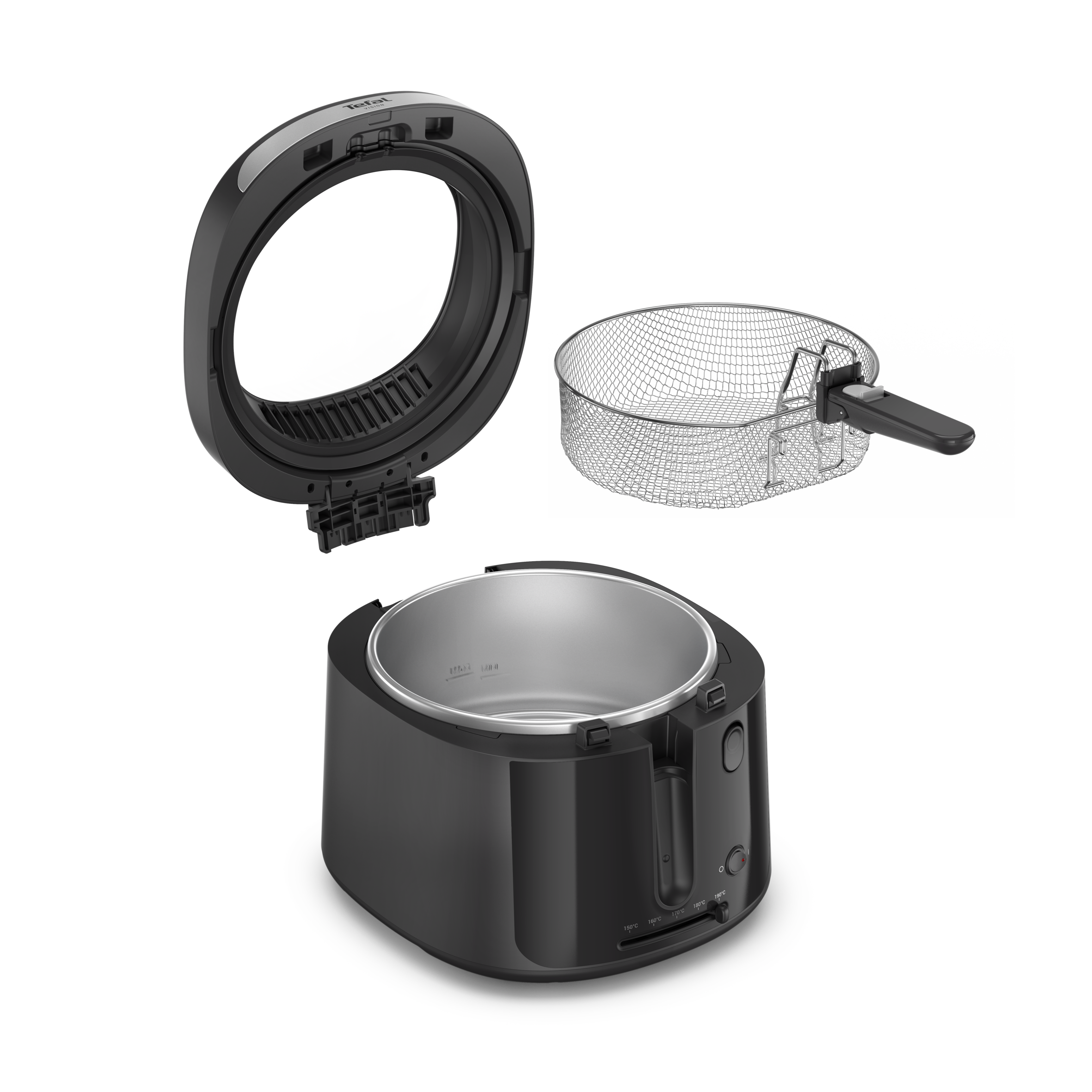 Fritteuse mit exklusivem Grandview Technologie Deckel für eine bessere Sicht und perfekte Ergebnisse Modernes, elegantes Design für einen raffinierten Akzent in jeder Küche Großes 1,2-kg-Fassungsvermögen, ideal für die ganze Familie — bis zu 4 Portionen Kompakte Fritteuse mit einklappbarem Griff zur einfachen Aufbewahrung in jeder Küche Herausnehmbare Teile — darunter der Korb, der Deckel und der Wasserauffangbehälter — für eine einfache Reinigung Einfach zu verwendendes Bedienfeld, Temperatursteuerung, An-/Aus-Knopf und automatische Deckelöffnung Präzise Temperatursteuerung für alle Lebensmittel