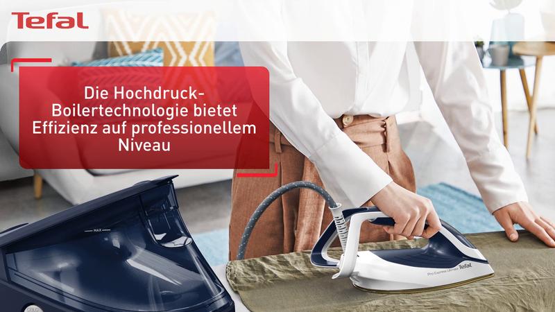 Tefal Pro Express Ultimate II vereint ultra-kraftvollen Dampf mit intelligenten Funktionen und Design für eine Dampfbügelstation, die Ihr Leben einfacher macht, jeden Tag. Außergewöhnliche Dampfkraft — 8 bar-Dampfdruck, 170 g/min kontinuierliche Dampfabgabe und ein extra-kraftvoller 590 g/min Dampfstoß — für höchst effiziente Ergebnisse, mit drei Einstellungen auf Knopfdruck und einer Reihe erweiterter Funktionen für eine einfache Wäschepflege jeden Tag.